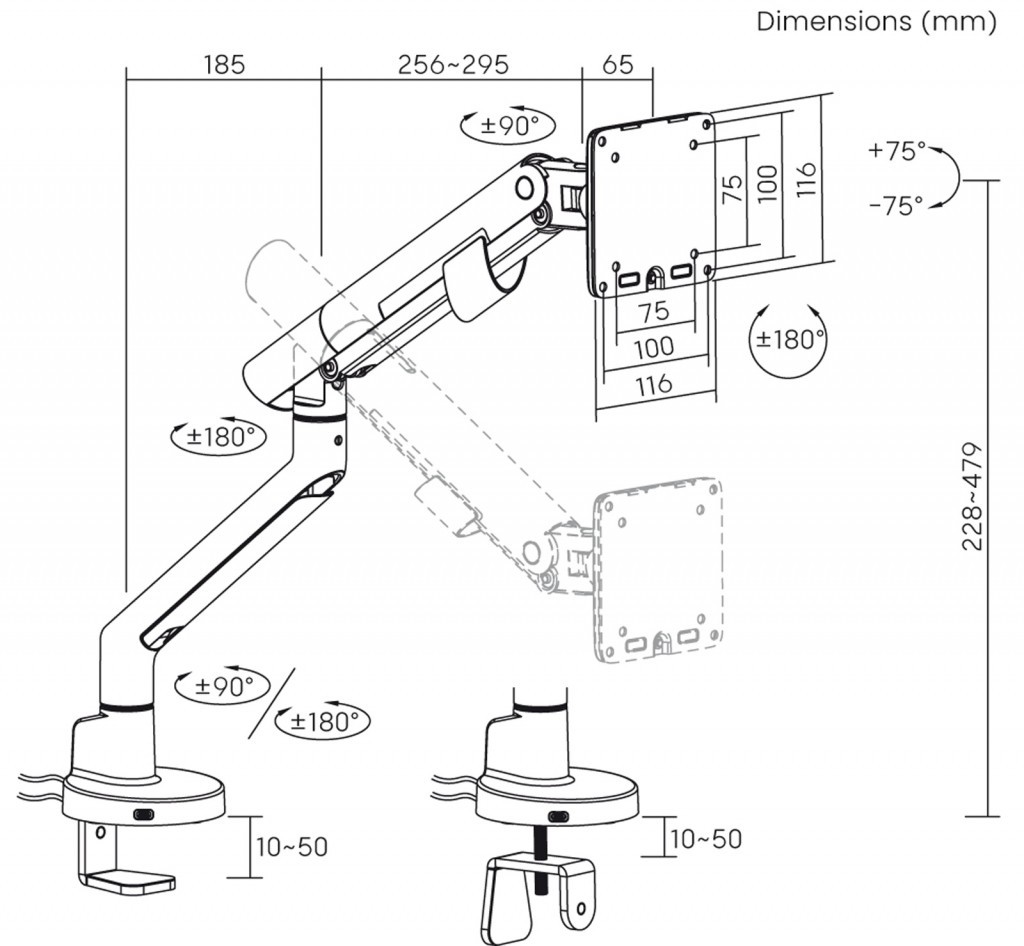 Standard VESA: 100 x 100, 75 x 75