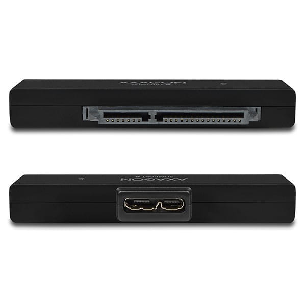 Kompaktowy szerokopasmowy adapter AXAGON ADSA-1S6 SLIMport6 z interfejsem USB 3.0 i SATA 6G przeznaczony do prostego przyłączenia dysków SSD lub 2.5" SATA.