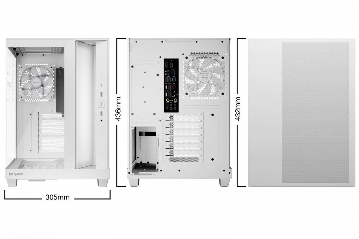 Light Base 500 LX Black może wydawać się kompaktowa, ale ma wystarczająco dużo miejsca na chłodnicę 360 mm, płytę główną ATX i karty graficzne o długości do 400 mm. Inteligentna konstrukcja wspornika na dyski obejmuje gniazda na 1 HDD i 2 SSD jednocześnie, nie ograniczając miejsca na zarządzanie przewodami za tacką płyty głównej.