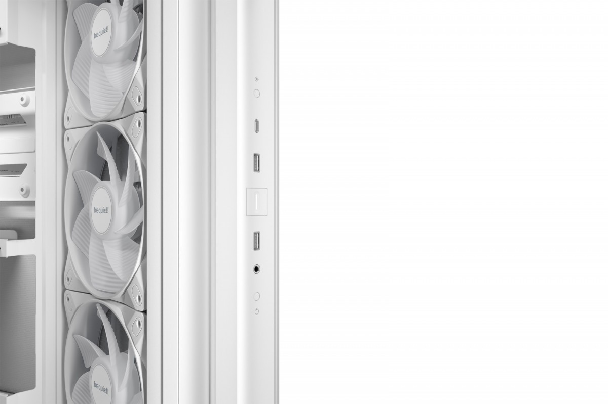 Kątowa ramka wentylatora jest nie tylko świadectwem elegancji i funkcjonalności, ale także kieruje więcej powietrza w stronę GPU - części, która tradycyjnie wymaga go dużo. Zapewnia ona zgrabne wycięcie, które działa jako wydajny wlot powietrza. Aby ułatwić instalację wentylatorów, wysuwa się ona do góry. Zarządzanie przewodami jest łatwiejsze niż kiedykolwiek wcześniej dzięki kanałowi, który elegancko ukrywa Twój sprzęt. Jeśli zainstalujesz dodatkowe wentylatory w dolnej części, będą one idealnie dopasowane do podłogi obudowy dzięki obniżonej wnęce wentylatora.