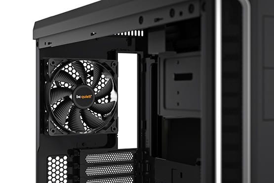 Dwa fabrycznie zainstalowane wentylatory Pure Wings 2 z dziewięcioma łopatkami zoptymalizowanymi pod kątem przepływu powietrza zmniejszają turbulencje i zwiększają ciśnienie powietrza: 120 mm z tyłu, 140 mm z przodu. Możliwy jest montaż do czterech dodatkowych wentylatorów chłodzących.