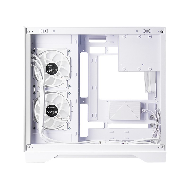 CHIEFTEC Visio wyposażony jest w hartowane panele szklane po obu stronach oraz z przodu, i posi-ada dwukomorowy design, który umożliwia instalację najnowszych płyt głównych z tylnymi złącza-mi (kompatybilnych z ASUS BTF i MSI Project Zero). Ten układ optymalizuje zarządzanie kablami dla czystego wnętrza i swobodnego przepływu powietrza.