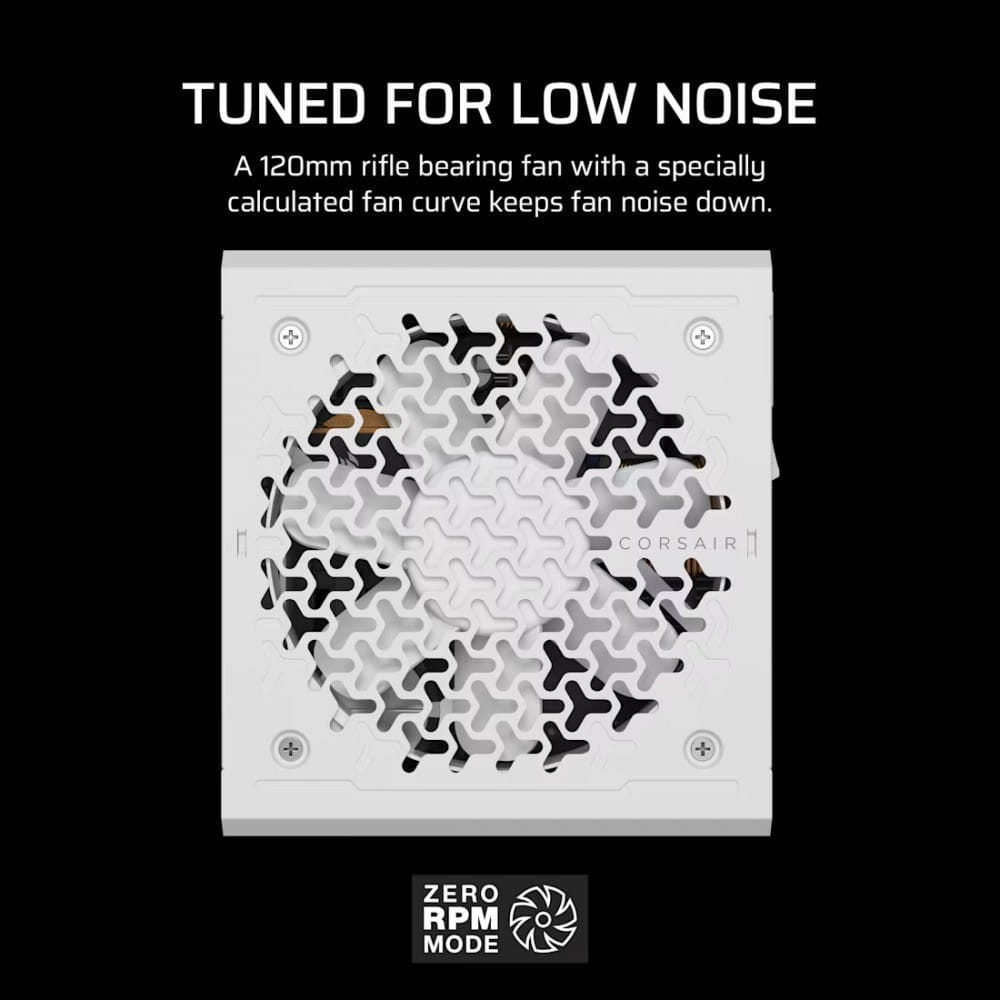 W pełni modułowe ciche zasilacze z serii CORSAIR RMe mają specjalny przewód do podłączania karty graficznej 12V-2x6, są zgodne z technologiami ATX 3.1 i PCIe 5.1 oraz mają certyfikat wydajności i kultury pracy Cybenetics Gold. Kompaktowy rozmiar zasilacza RMe ułatwia także prowadzenie przewodów.