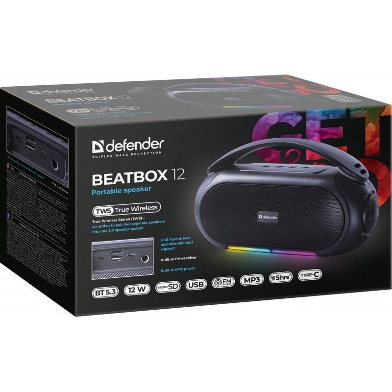 Defender Głośnik bluetooth BEATBOX 12 16W czarny podświetlenie LED