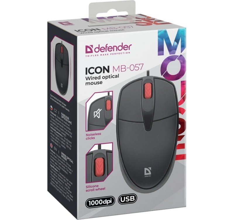 Defender Mysz przewodowa silent click ICON MB-057 1000 DPI Czarna
