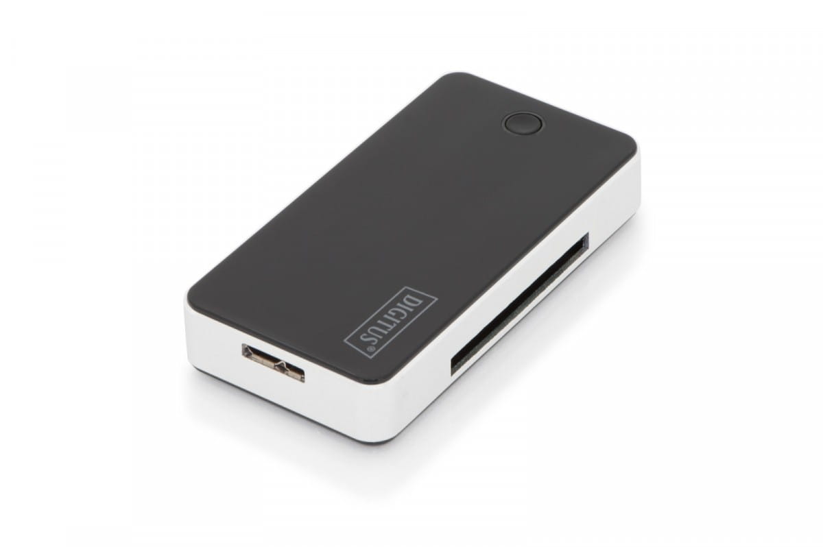 Uniwersalny czytnik kart pamięci z USB 3.0 firmy DIGITUS umożliwia szybkie i proste przesyłanie cyfrowych treści do komputera PC lub Mac.