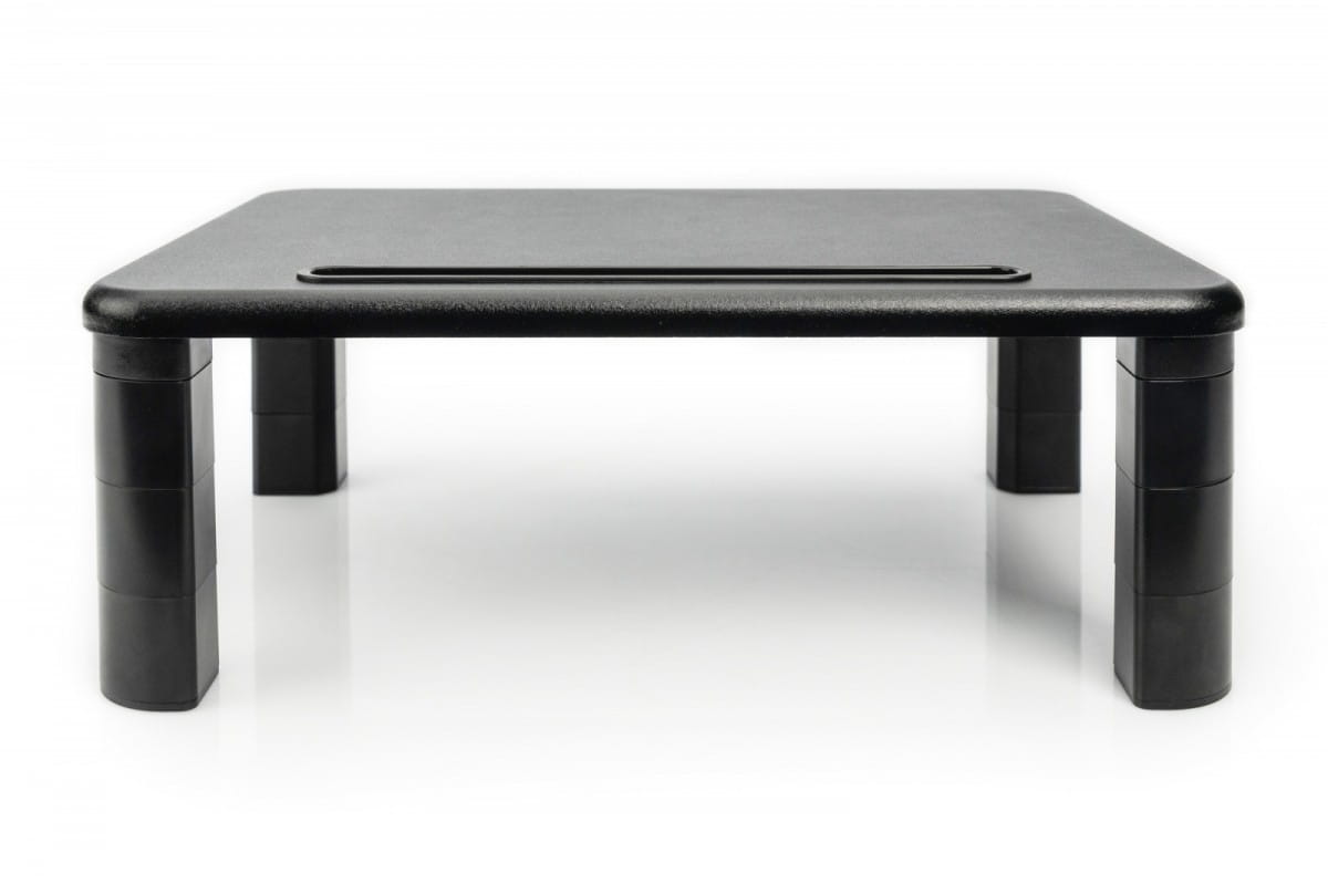 Regulowane podwyższenie monitora pomaga w indywidualnym zaprojektowaniu miejsca pracy. Dzięki modułowej konstrukcji nóżek można elastycznie zwiększyć wysokość w 3 krokach i odstawić tablet lub smartfon na przedniej części.