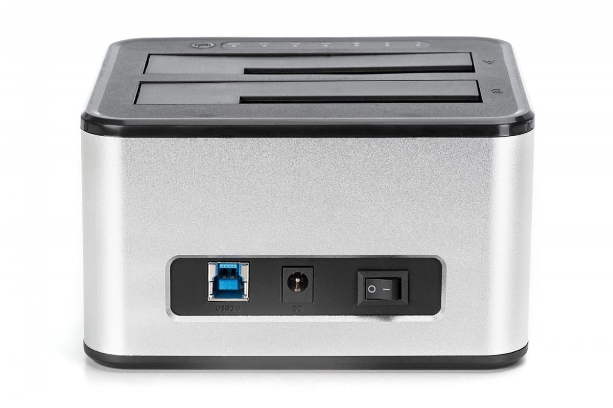 Pozostałe parametry: Połączenia: USB 3.0 Kompatybilność: dyski HDD i SSD SATA 2,5" i 3,5" Wskaźniki stanu: Kontrolki LED informujące o stanie pracy i klonowania Jednoczesny odczyt: Możliwość odczytu i zapisu na dwóch dyskach twardych jednocześnie Obsługa SATA: SATA3 dla szybkiego transferu danych Plug-and-play: nie wymaga dodatkowego oprogramowania ani sterowników