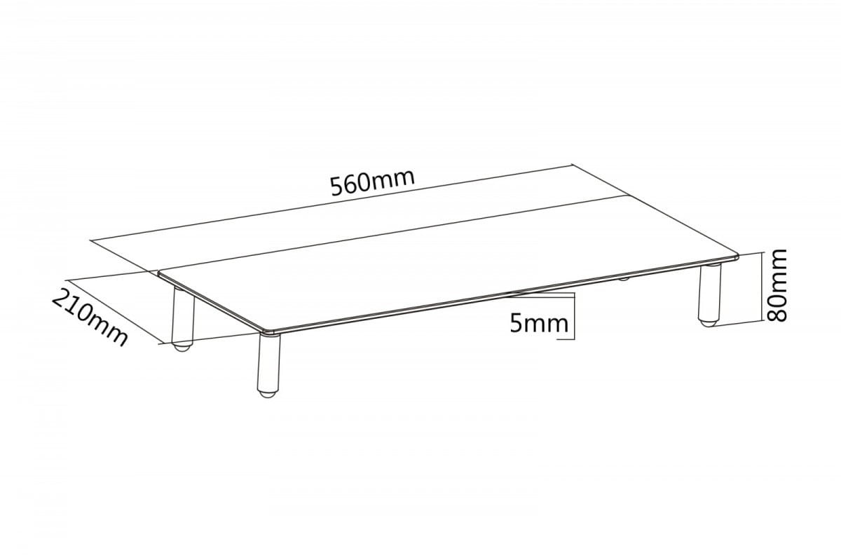 Wymiary: - Podstawka: 560 x 210 x 80 mm- Powierzchnia ustawienia: 560 x 210 mm