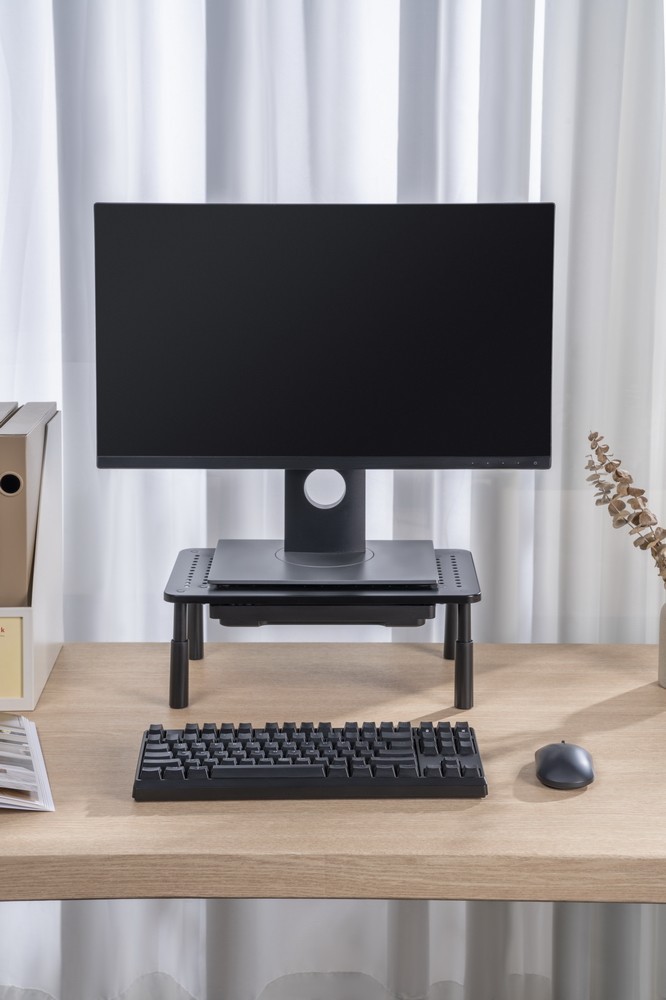 Podstawka regulowana pod monitor z szufladą