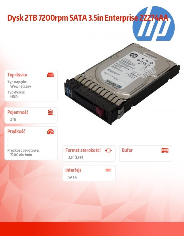 Dysk serwerowy HP 2TB 7200RPM SATA 3.5in Enterprise 2Z274AA