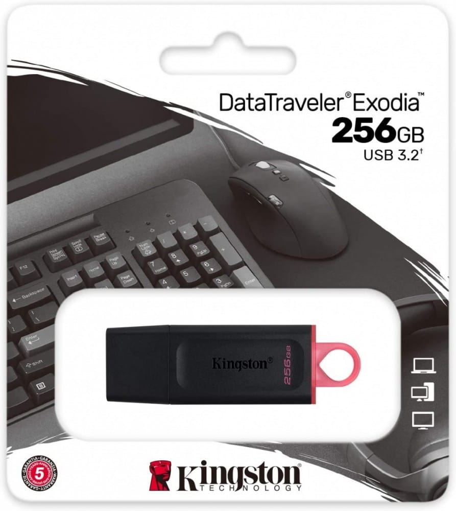Kingston DataTraveler Exodia M to pamięć, która oferuje wydajność interfejsu USB 3.2 Gen 1, aby zapewnić łatwy dostęp do danych na komputerach przenośnych i stacjonarnych, monitorach i innym sprzęcie elektronicznym. Pamięć DT Exodia M umożliwia szybki transfer i wygodne przechowywanie dokumentów, muzyki, filmów i innych danych. Jest dostępna w wielu stylowych wersjach kolorystycznych, które odpowiadają różnym pojemnościom do 256 GB. Dzięki praktycznej konstrukcji jest idealnym przenośnym urządzeniem do przechowywania danych w pracy, domu i szkole. Dodatkowymi zaletami pamięci DT Exodia M są pięcioletnia gwarancja, bezpłatna pomoc techniczna i legendarna niezawodność produktów firmy Kingston.