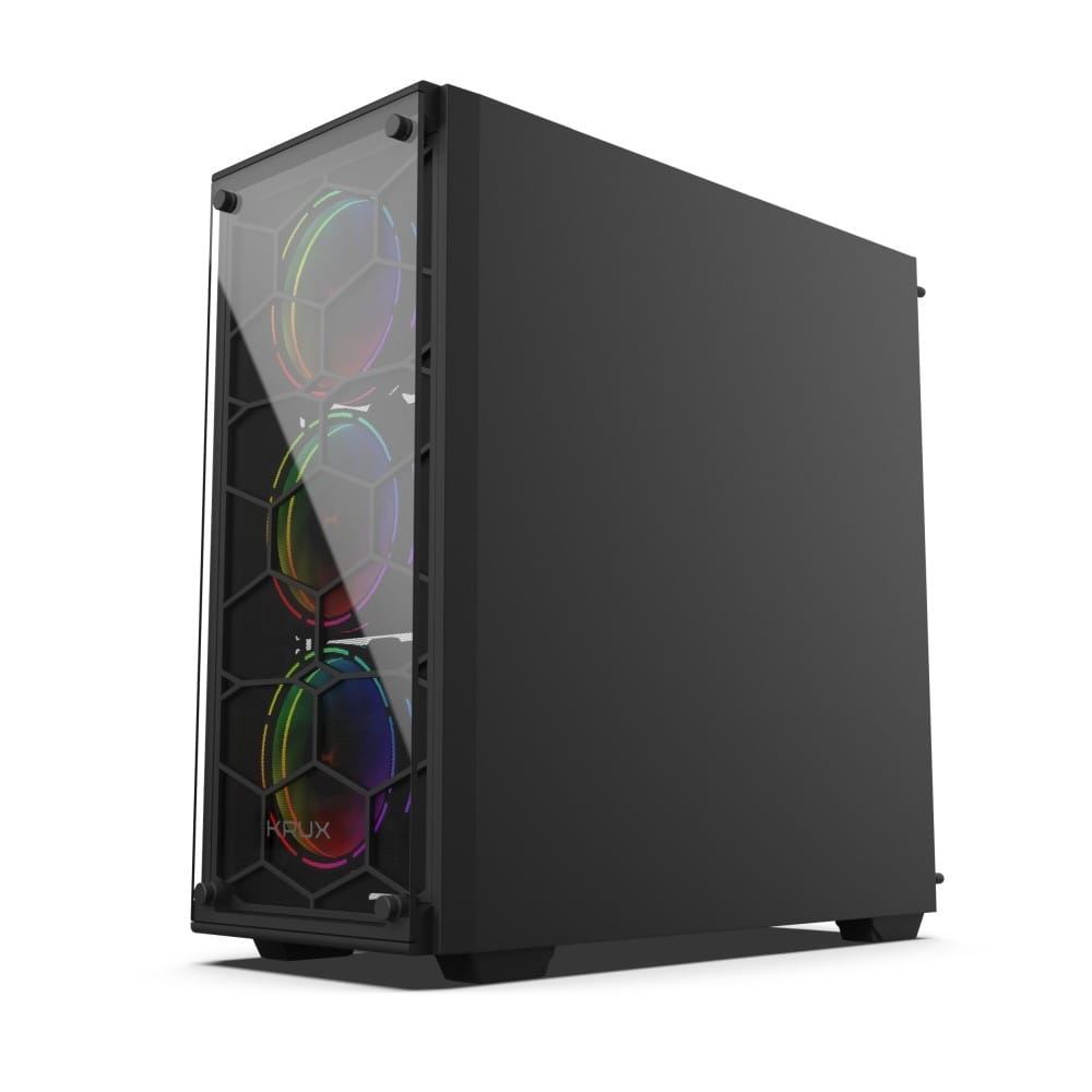 Pozostałe parametry: Miejsca na karty rozszerzeń: 7 Filtry przeciwkurzowe: 3 Maksymalna długość karty graficznej: 375 mm Maksymalna wysokość chłodzenia CPU: 165 mm Maksymalna długość zasilacza: 240 mm System chłodzenia (4 wentylatory w komplecie, maksimum 6): Przód: 3 × wentylator KRUX Rainbow 120 mm (maks. 1600 obr./min) Tył: 1 × wentylator KRUX Rainbow 120 mm (maks. 1600 obr./min) Kompatybilność z AIO: Przód: 1 × 120/240 mm Tył: 1 × 120 mm