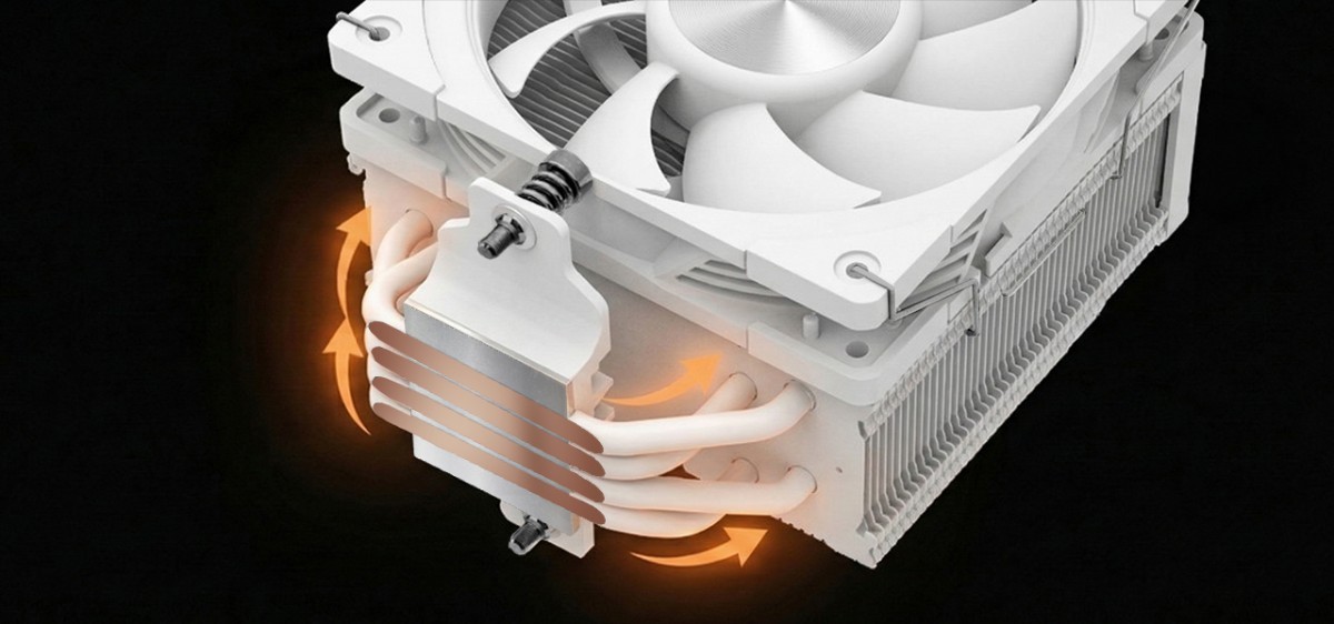 Cztery rurki cieplne wykonują tytaniczną pracę, aby jak najlepiej schłodzić procesor. To dzięki nim ciepło jest skutecznie odprowadzane od procesora, by mógł on pracować jak najefektywniej.