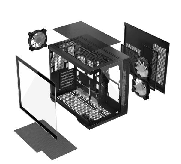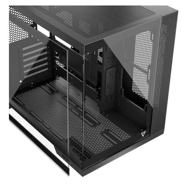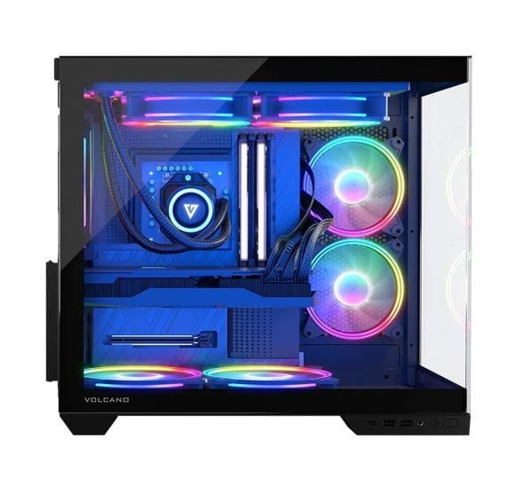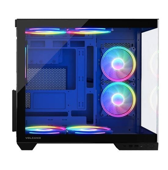 Volcano Panorama to dwukomorowa konstrukcja, która oddziela część serwisową wraz z zasilaczem montowanym pionowo od części właściwej komputera w której montowana jest płyta główna z podzespołami. Dzięki takiemu rozwiązaniu w jeszcze lepszy sposób wyeksponowane są najważniejsze dla graczy komponenty.