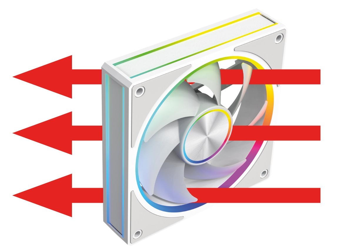 Łopatki wentylatora zostały precyzyjnie zaprojektowane, by zapewnić maksymalny przepływ powietrza niezależnie od miejsca montażu. Niezależnie od tego, czy umieścisz je na froncie, górze czy z tyłu obudowy zawsze otrzymasz optymalne chłodzenie. Zainstalowane z przodu skutecznie wtłoczą chłodne powietrze do środka, a zamontowane z tyłu lub u góry sprawnie odprowadzą gorące powietrze na zewnątrz. Dzięki temu Twój komputer zachowa niskie temperatury i pełną wydajność w każdych warunkach.