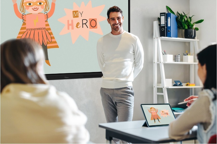 - Ekosystem rozwiązań Optoma: Obejmuje Optoma Solution Suite, Optoma Account Manager i Optoma Management Suite dla ułatwienia pracy nauczycieli i zespołów IT.