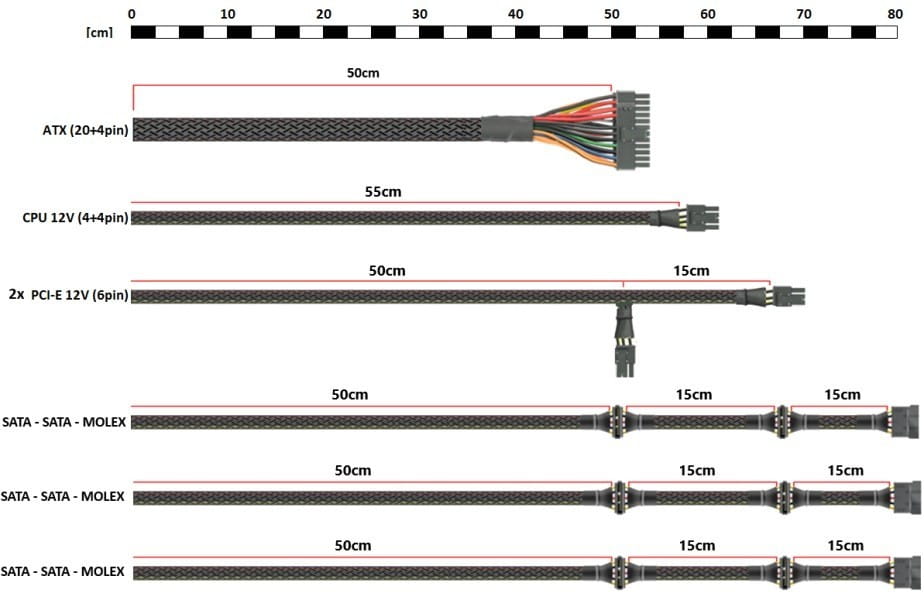 - kable typu FLAT BLACK, dzięki czemu łatwo je ułożyć w obudowie i pozostają mało widoczne przy transparentnych obudowach