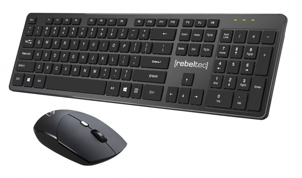 Rebeltec Zestaw bezprzewodowy klawiatura + mysz MAXIM 2,4GHz, zasięg 10m nano odbiornik USB 104 klawisze QWERTY
