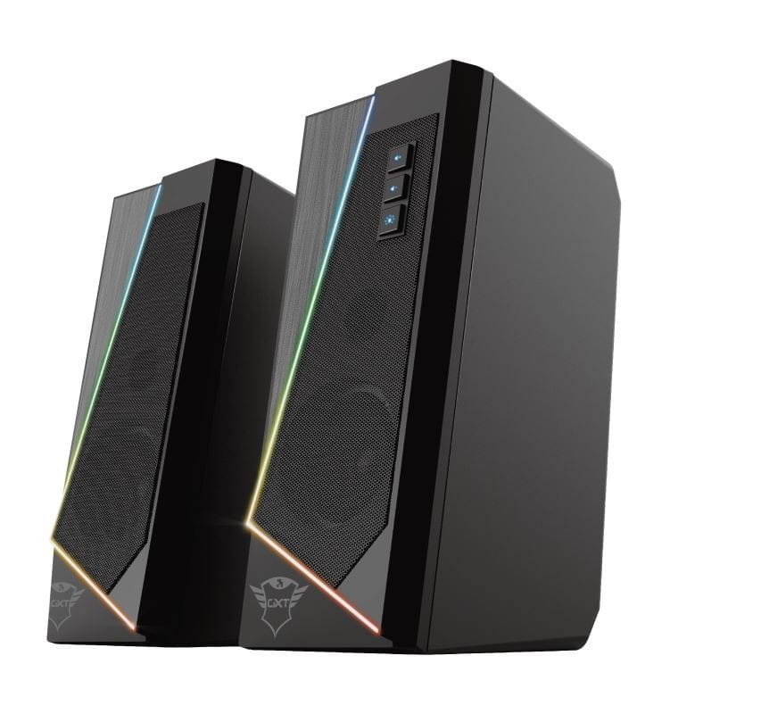 Dzięki eleganckiemu wzornictwu i subtelnemu oświetleniu RGB Trust GXT 609 Zoxa jest stylowym dodatkiem do każdego biurka. Co więcej, ten zestaw głośników stereo jest łatwy w użyciu i nie wymaga nawet wtyczki do gniazdka. Włączają się automatycznie po włączeniu komputera.