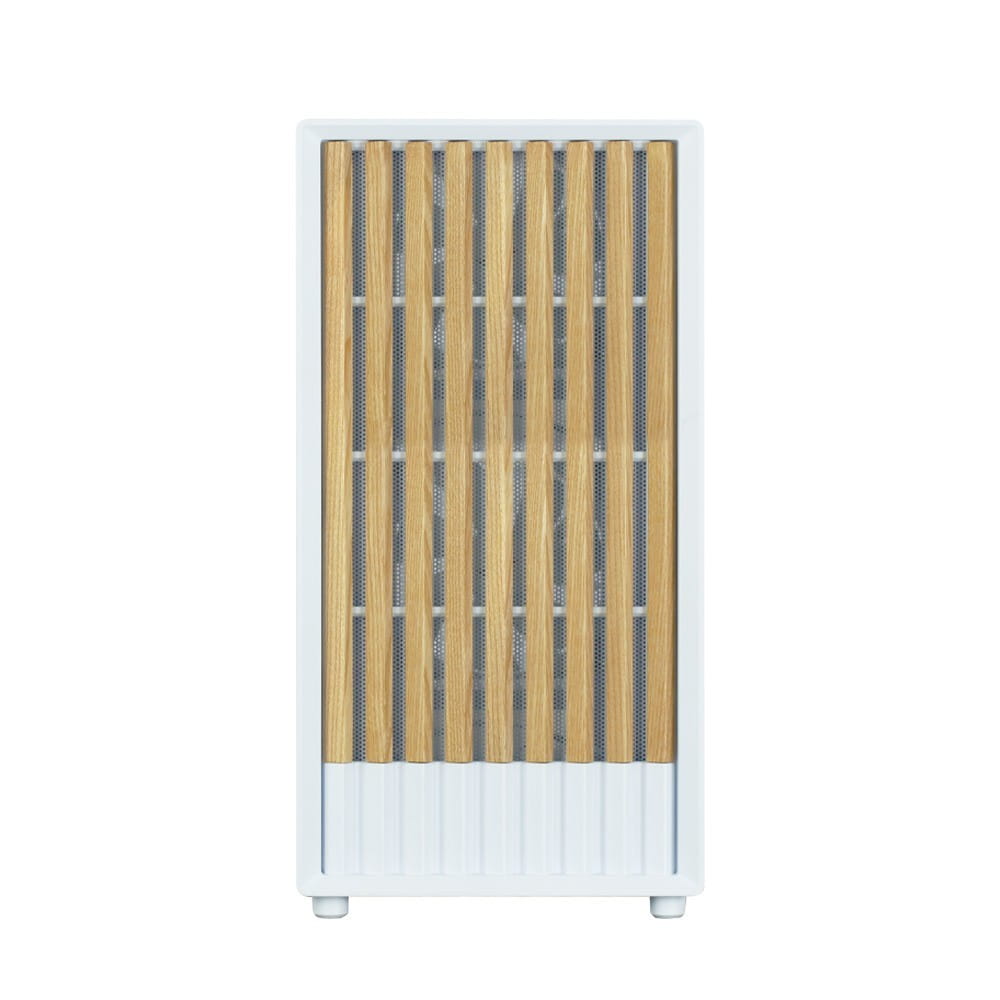 Górny i przedni panel z drewnianym paskiem i siatką poprawiają wentylację i zapewniają dodatkowy przepływ powietrza w systemie.